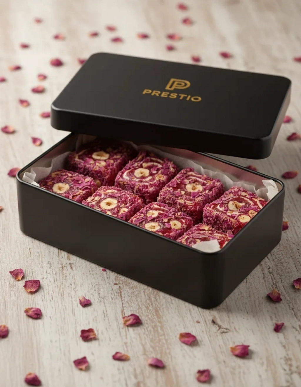 Gül Yapraklı Fındıklı Lokum 700g, Premium Metal Kutuda Türk Lokumu