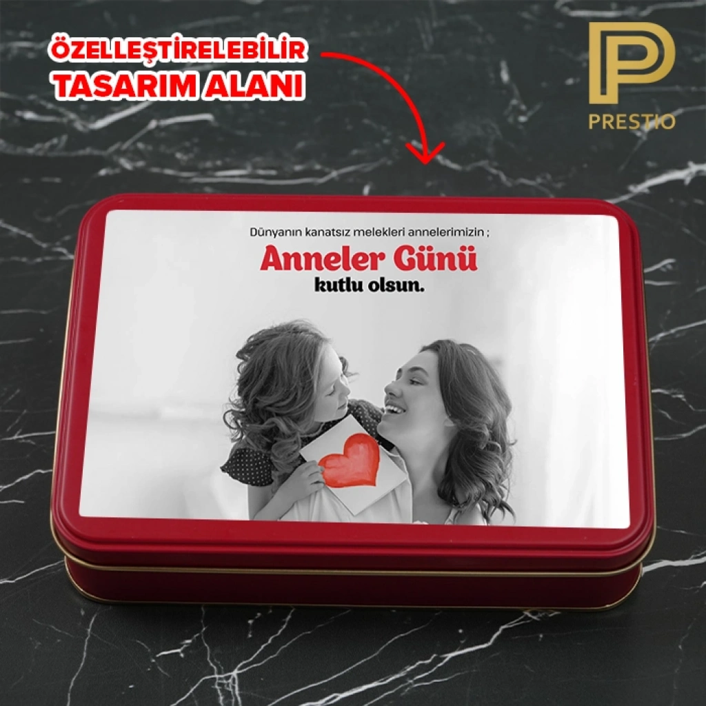 Kişiye Özel Dekoratif Metal Kutu, Kırmızı Renk, 190 x 135 x 45H mm