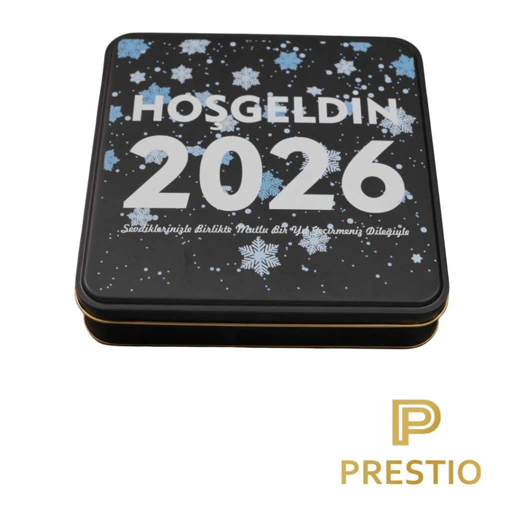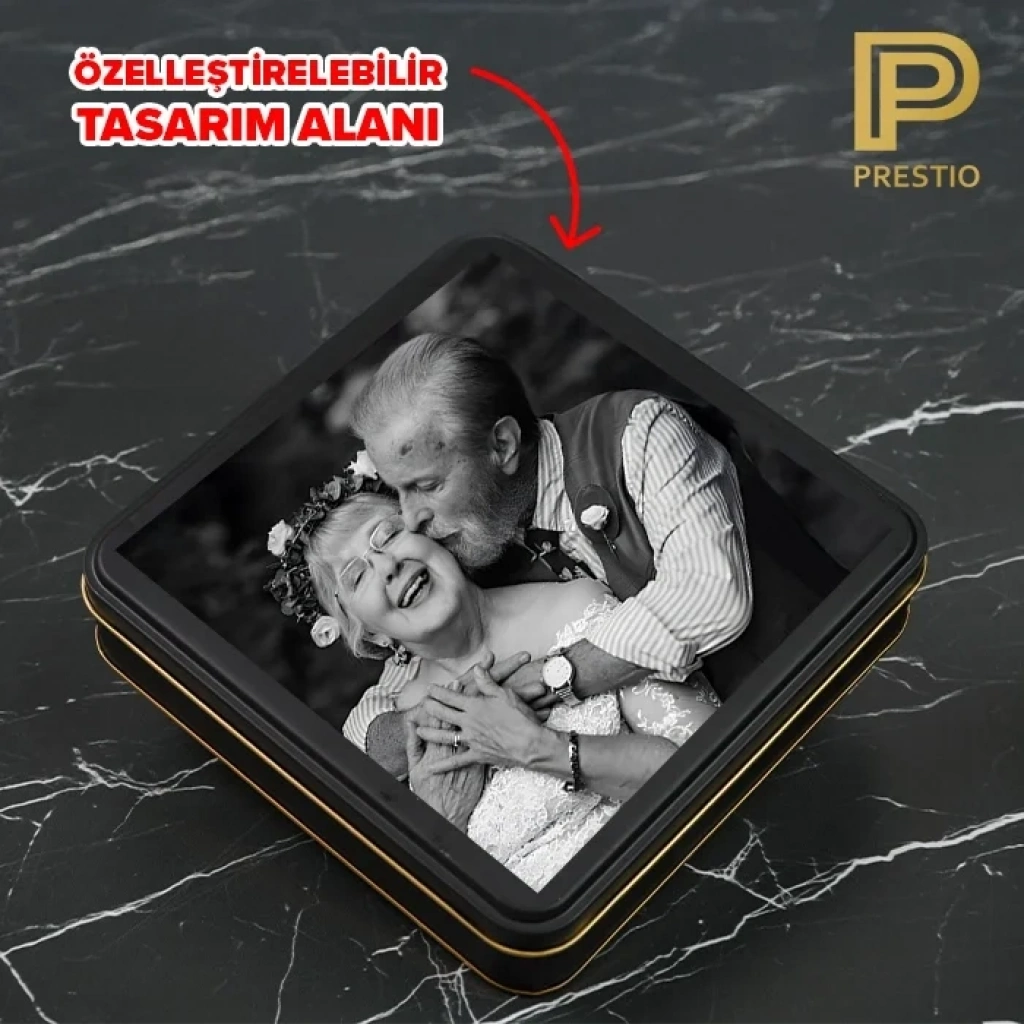 Kişiye Özel Dekoratif Metal Kutu, Siyah Renk, 192 x 192 x 45H mm