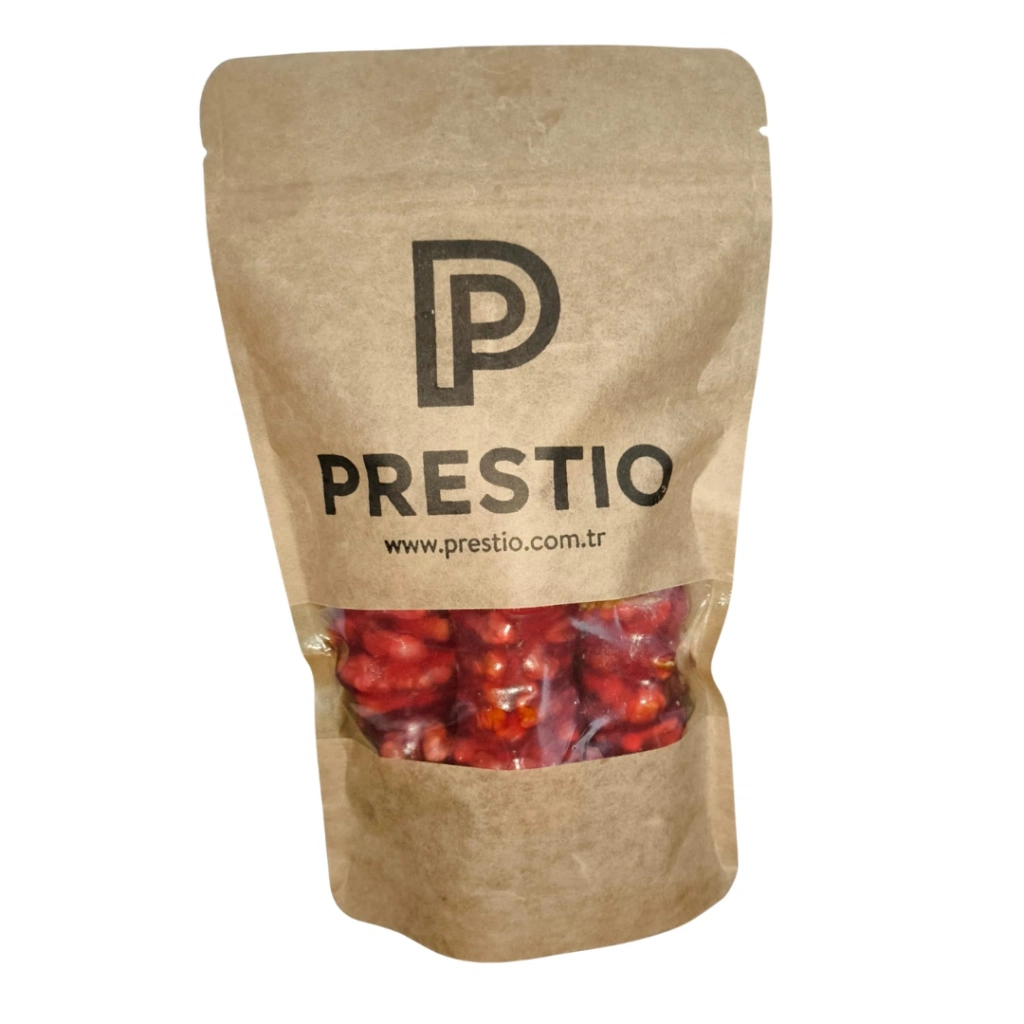 Nar Aromalı Ekstra Kelebek Cevizli Sucuk, atıştırmalık olarak tercih edebileceğiniz lezzetli bir seçenektir. Prestio'nun kalitesi ve lezzetiyle buluşturduğu bu ürünü şimdi deneyerek, damaklarınızda unutulmaz bir tat bırakabilirsiniz.